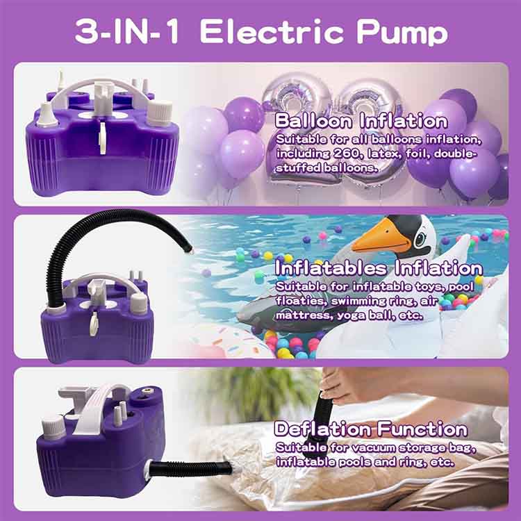 3 su 1 pompa a mongolfiera elettrica Usa la tecnologia per semplificare la vita e rendere la creatività a portata di mano. Che si tratti di una riunione di famiglia, celebrazione delle vacanze, avventura all'aperto o deposito domestico, è un manufatto indispensabile per migliorare la qualità della tua vita! Prendilo ora e inizia una nuova esperienza di inflazione efficiente e conveniente!