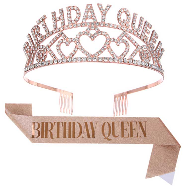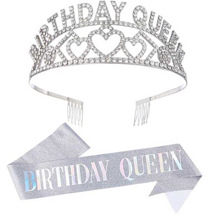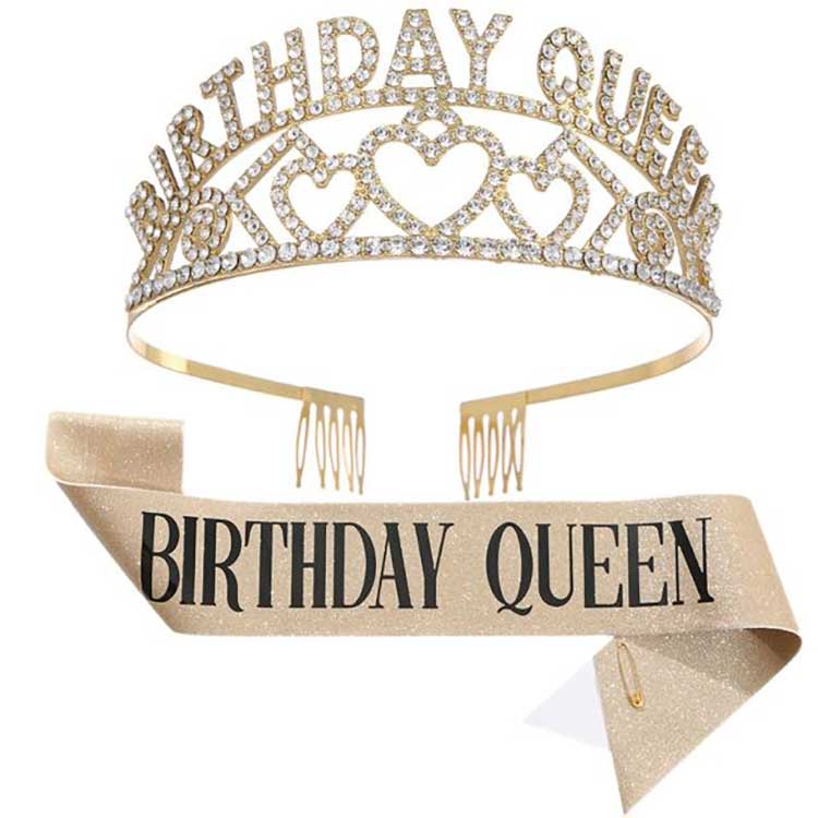 La Birthday Queen Crown è un copricapo fornito in set con la tracolla. Il corpo principale della corona è realizzato in lega, garantendo che non sbiadisca o si danneggi. Abbiamo utilizzato una tecnica di intarsio per fissare i diamanti al telaio in lega, evitando che cadano facilmente. Questa perfetta qualità del prodotto garantisce che potrai continuare a utilizzarlo in futuri eventi di compleanno.