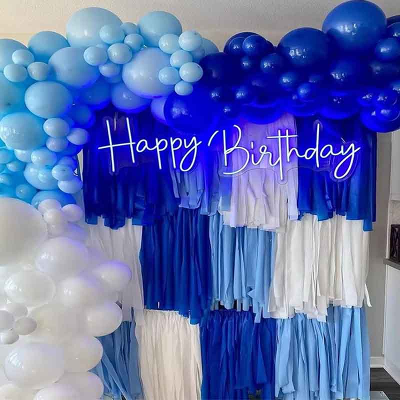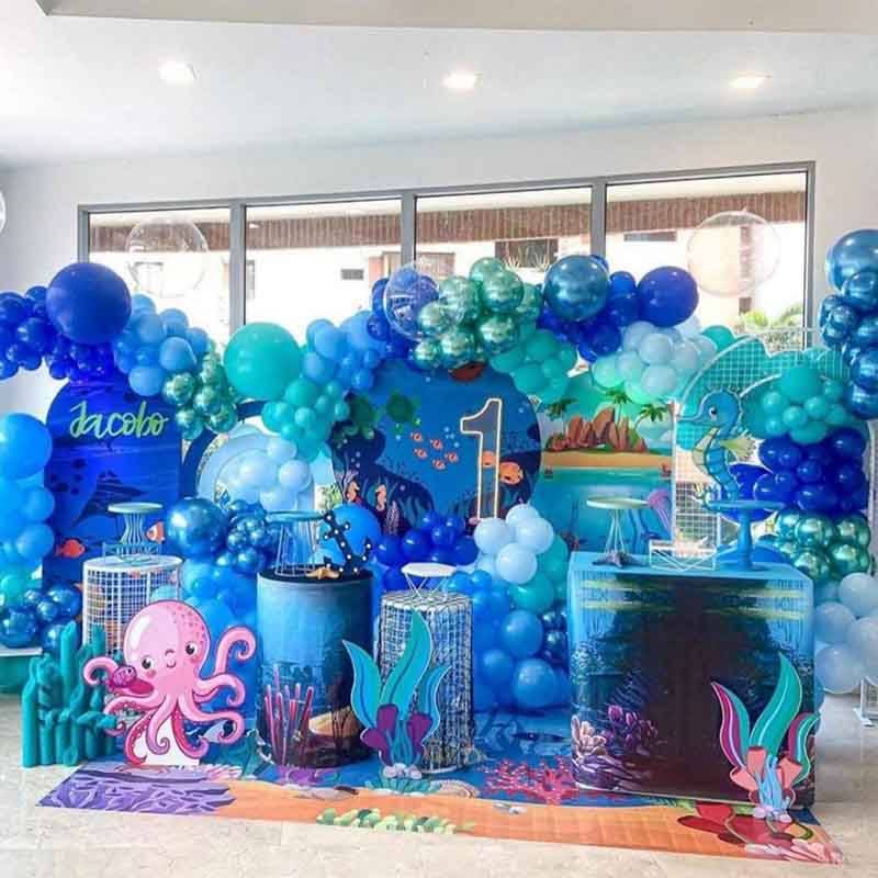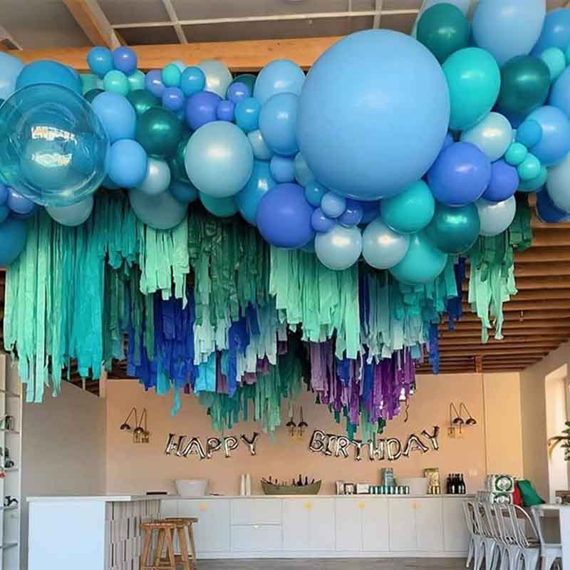 Il kit di arco di ghirlande blu palloncini offre una varietà di toni blu, tra cui azzurro, blu scuro, blu reale e blu cielo, per soddisfare le esigenze di diverse scene.