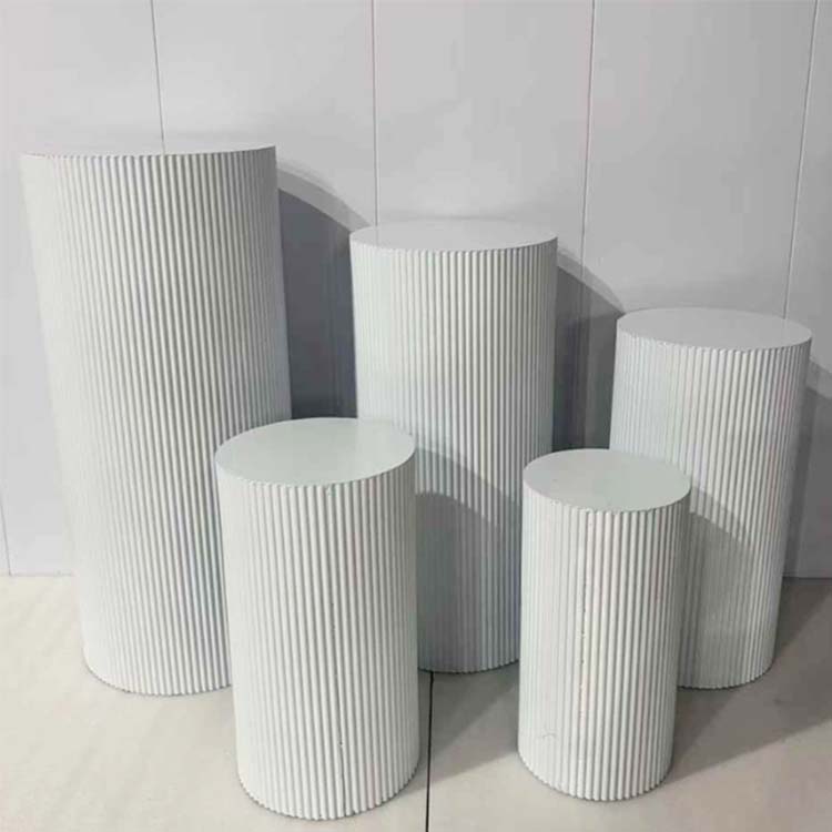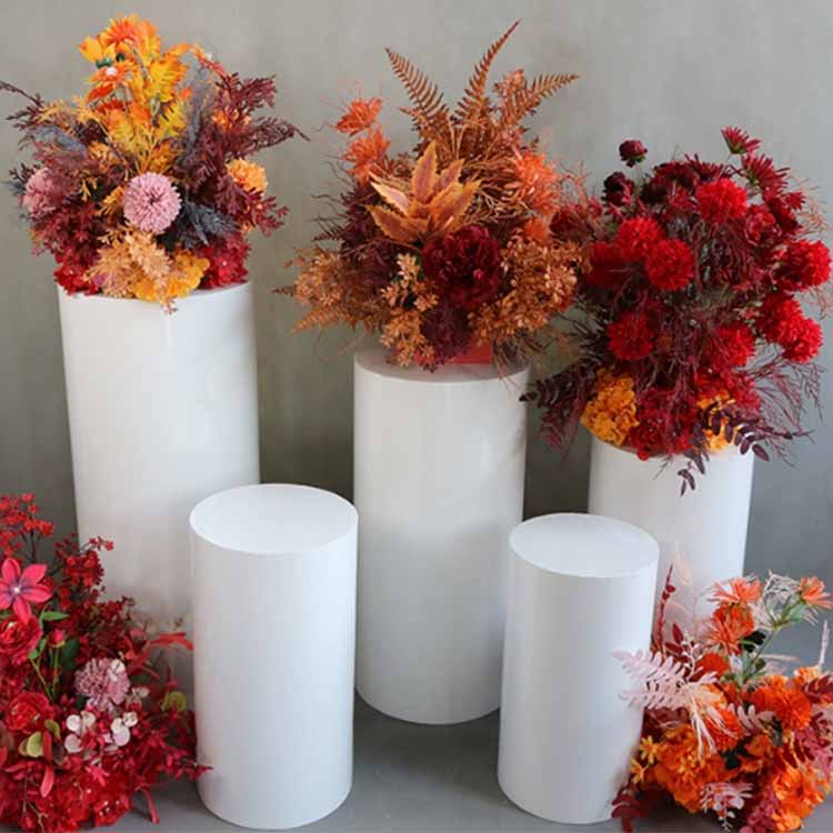 Il tavolo da dessert è cilindrico con superfici lisce e piatte attorno ai bordi. Ha una base ampia, un baricentro stabile e non si ribalta facilmente. È resistente alla corrosione, all'ossidazione, strutturalmente sano e ha una forte capacità portante. È disponibile in una varietà di colori, tra cui bianco avorio, oro champagne e nero vintage.