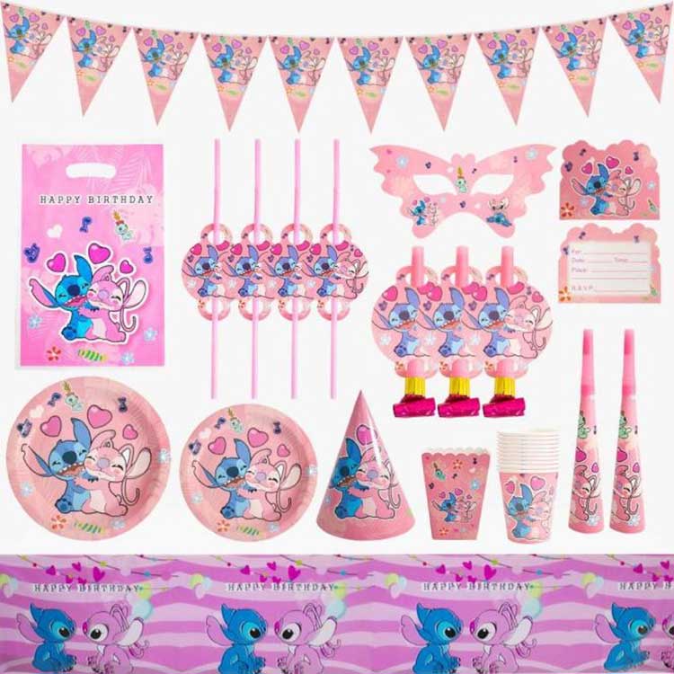 Rotoli di carta da 7 pollici, rotoli di carta da 9 pollici, bicchieri di carta, bandiere triangolari, biglietti d'invito, soffiatori di draghi, altoparlanti, cannucce, maschere, cappelli di carta, scatole di popcorn, fazzoletti, tovaglie, sacchetti regalo, coltelli blu, forchette blu, cucchiai blu.