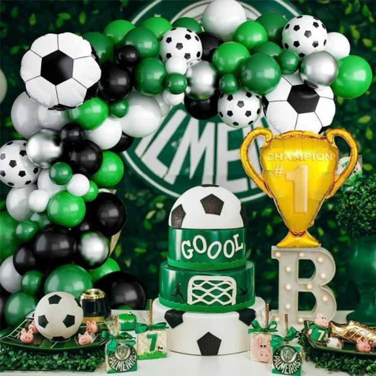 Il kit arco per palloncini a tema calcio è composto da 101 componenti, che includono palloncini in lattice, palloncini in alluminio e strumenti di assemblaggio. Possono creare uno sfondo decorativo a forma di arco con un diametro da 2 a 3 metri.