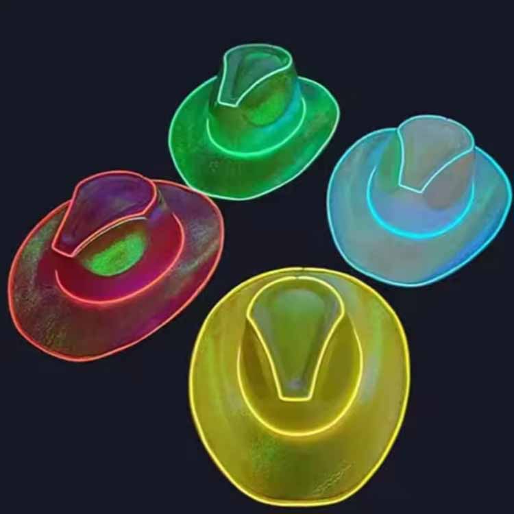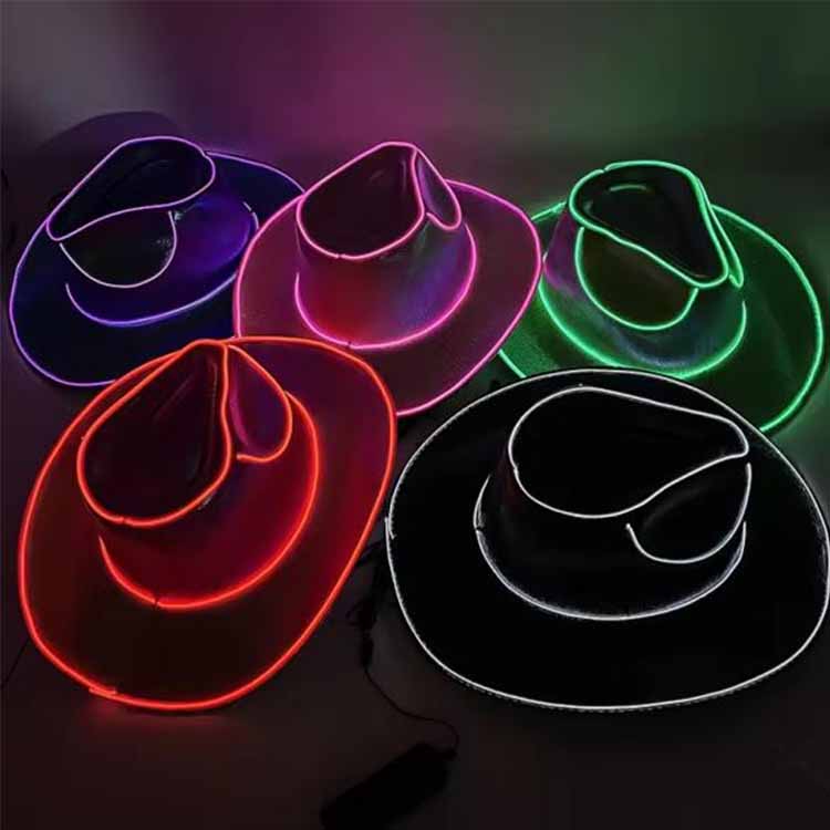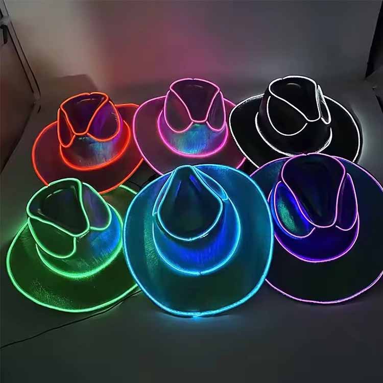 Questo cappello colorato fluorescente a led è facile da usare e può essere facilmente installato in soli 5 minuti. Installa semplicemente due batterie AA, accendi l'interruttore e goditi il divertimento del cappello da cowboy illuminato.