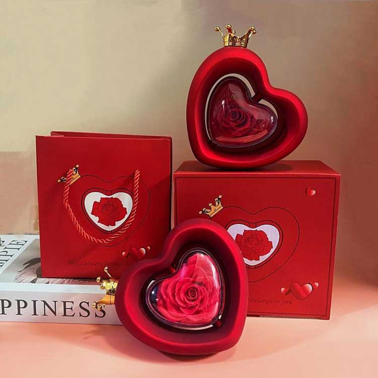 Il portagioie rosa a forma di cuore utilizza fiori conservati di grado A, il cui colore e consistenza sono indistinguibili dai fiori freschi.