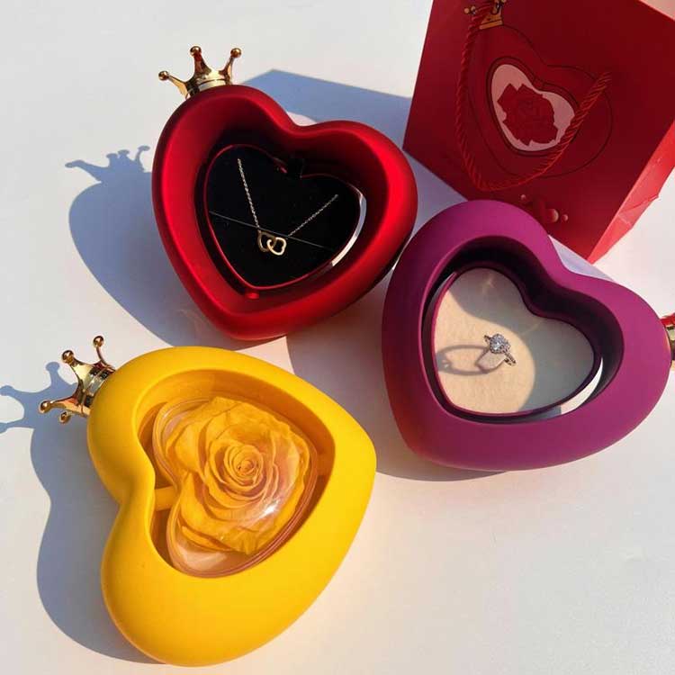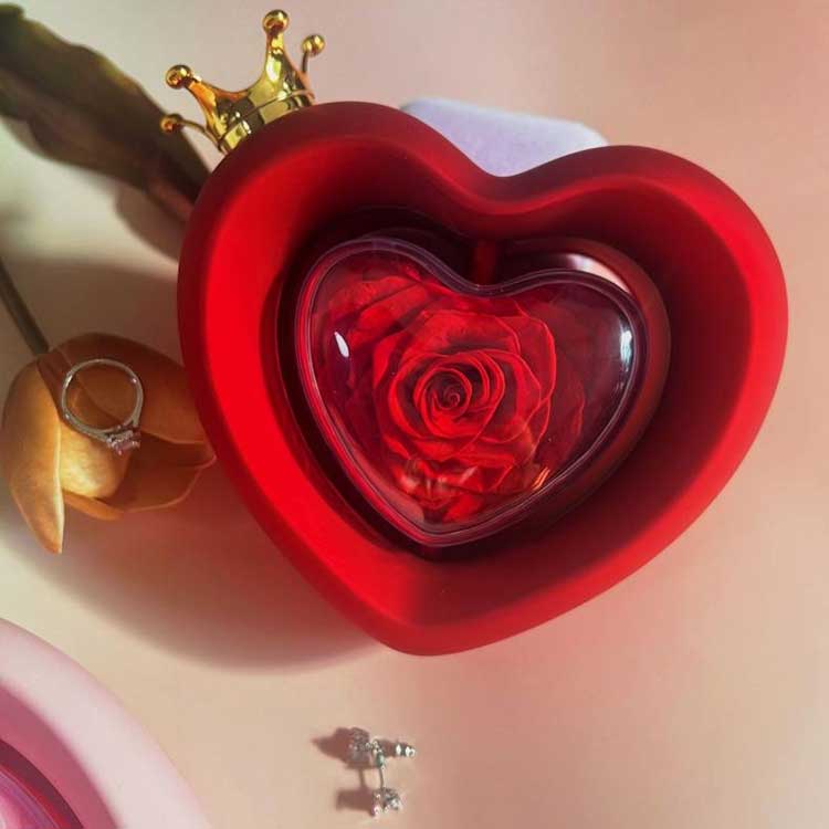 Questo portagioie con rosa a forma di cuore unisce bellezza e praticità. puoi posizionare la scatola come pezzo decorativo. Che tu abbia bisogno di conservare correttamente i tuoi preziosi gioielli o di preparare una sorpresa sincera per la persona amata, questo portagioie a forma di cuore è la scelta ideale. È più di un semplice contenitore per riporre oggetti. Ogni dettaglio trasuda romanticismo ed eleganza.