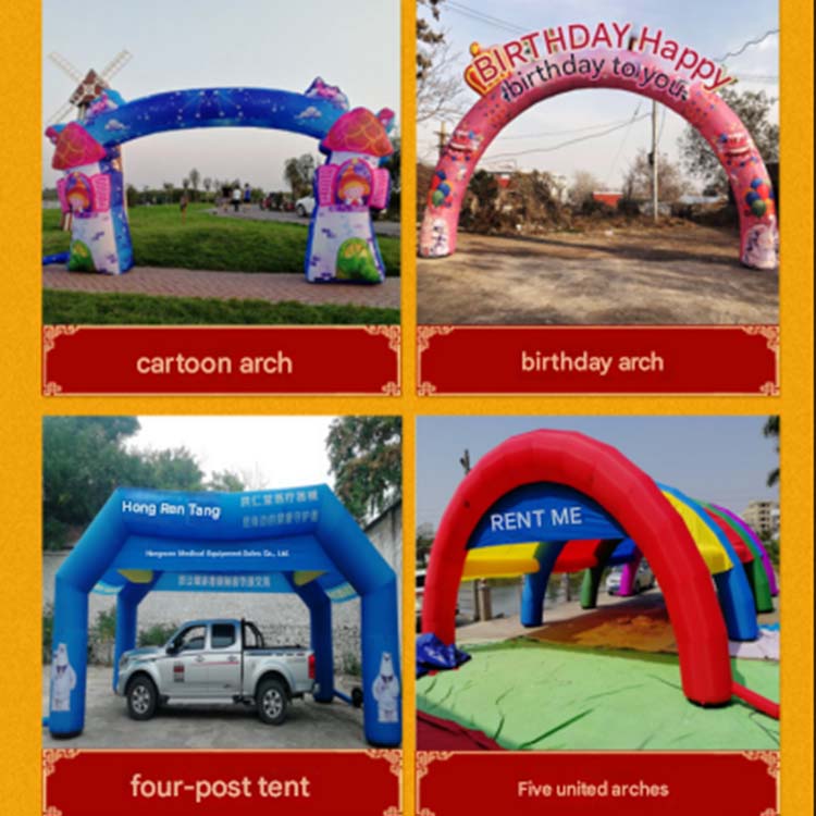 Dimensioni e forma: disponibile in una varietà di dimensioni e design: archi curvi classici, forme personalizzate (come loghi, personaggi dei cartoni animati), archi a doppio gonfiabile o stili a tema (matrimonio, sport, festival).