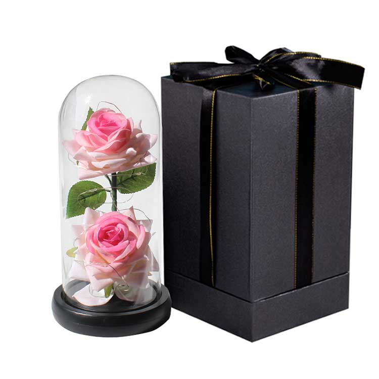 Utilizziamo imballaggi in schiuma all'interno della luminosa rosa galattica per proteggere la cupola di vetro. La confezione esterna include una scatola standard nera o rosa e una confezione regalo nera di fascia alta. I clienti possono scegliere il packaging che preferiscono; l'imballaggio premium consente prezzi di vendita più elevati e maggiori profitti.