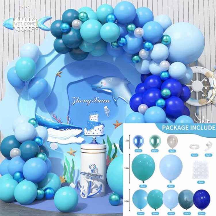 1. Palloncini colorati di base: blu oceano profondo, blu oceano chiaro, bianco e trasparente (simula l'acqua dell'oceano, le onde e le bolle)