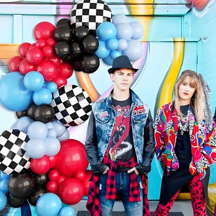 Il kit di decorazione per arco di palloncini a tema corse è composto da 88 componenti. Include 80 palloncini in lattice, 6 palloncini in alluminio, 1 catena per palloncini e 1 punto di colla.