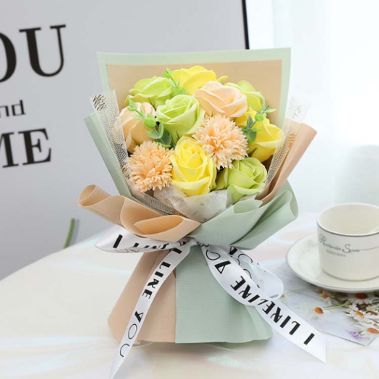 Il bouquet di fiori di sapone contiene 11 fiori colorati ed è ornato da un nastro. Le occasioni adatte includono: Confessione, gratitudinee, regali, celebrazioni stagionali, comunicazioni aziendali, premiazioni e commemorazioni, benefici aziendali, ecc.